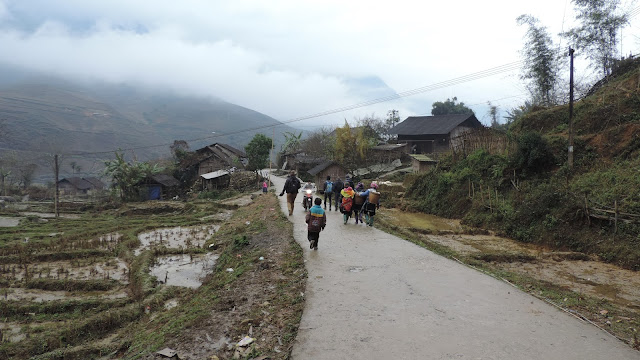 Back down to Sa Pa for lunch, then we board the bus about 2:30 for Hanoi! The weather is starting to clear and the views as we switchback down the mountain, are spectacular. It also seems to be butcher day! There are men chopping meat into hunks, large whole water buffalo carcasses and a couple of fresh kills, all on the shoulder of the road. We also note groups of men eating and drinking beer on the roadside while their women work the rice paddies below!