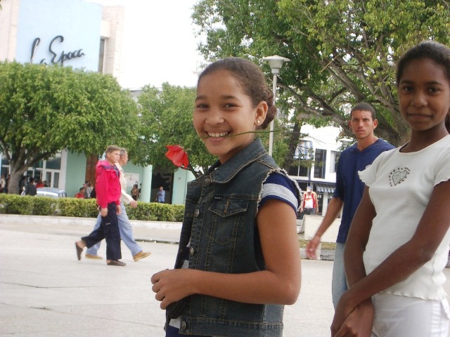 Our favourite pastime is to sit on a bench and watch the people. An older gent successfully tries to sell Bob a belt that he claims is homemade. A chatter of adolescents entertains us with their antics and allows us to take their pictures. One of the young ladies has a rose and Susan asks her to pose.