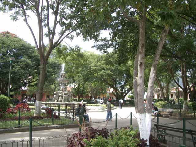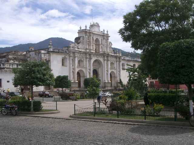 Antigua is laid out in the traditional Spanish style around a large parque central or central square. City Hall occupies one side of the square and the ruins of a huge cathedral, another. In the centre is a large and ornate fountain. Shady trees, pathways, park benches and flower beds make the parque a very pleasant place to stroll, or just sit on a bench and watch the world go by.