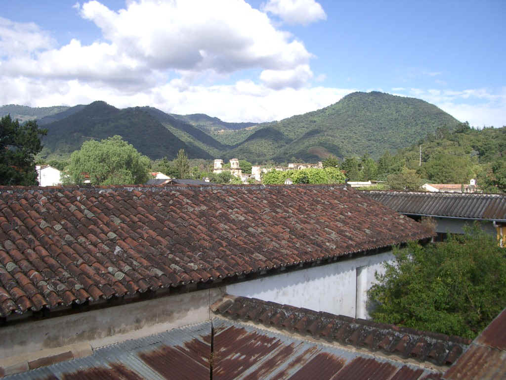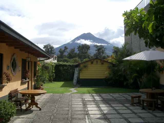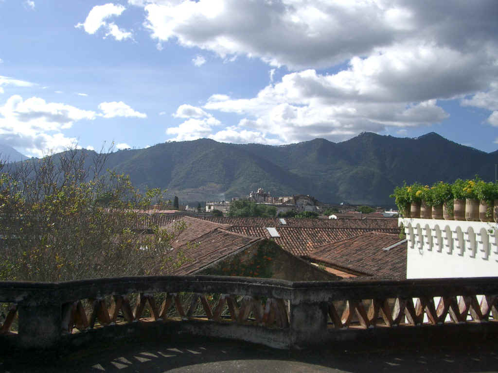 Our bedroom window looks on a beautiful volcano rising above the end wall of the courtyard. In fact, every view in Antigua seems to feature one or more volcanoes.