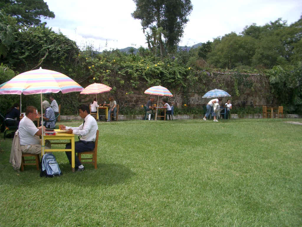 During break times we chat with other students from the U.S., Denmark, Czech Republic, Japan, Korea, Australia and many other countries. Just across the street is a little kiosk that sells unidentified (but delicious) snacks on a tortilla that really hit the spot at mid-morning break. Each afternoon, the school offers activities which are led by some of the teachers. We tour a museum or two and go on a field trip to a large coffee plantation that features our first trip on one of Guatemala's infamous chicken buses.