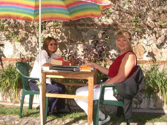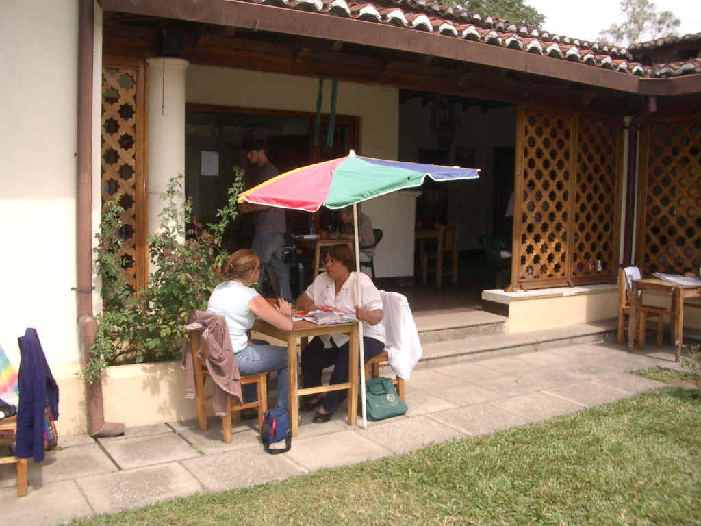 Our Spanish progresses quickly with this intense instruction. By the end of the two weeks, Susan, who essentially started from scratch, is able to form simple sentences and understand a remarkable amount of what she hears. I started as an advanced beginner and on the last day my instructor says I am now at the "advanced intermediate level". I can use five verb tenses, although the irregular forms of the preterite tense continue to plague me.