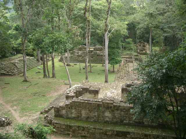 Our second weekend, we travel by minibus (not Chicken Bus) to visit the ancient Mayan ruins at Copán. The biggest archaeological site in Guatemala is at Tikal in the northern province of Petén but it would be too far to travel just for the weekend. Someday we will go back and visit Tikal when we have more time. Copán is actually just a few kilometres across the border into Honduras so we get to add another country to our list. The minibus collects us very early on Saturday morning and some six hours later deposits us in the pretty little village of Copán Ruinas. The Mayan site is about 2 km from this village, which was actually built in 1890 to house the archaeologists who did the initial excavation.