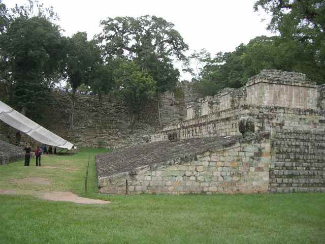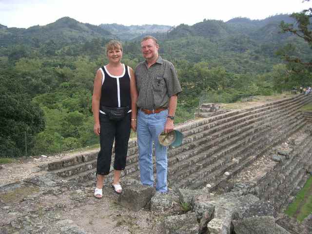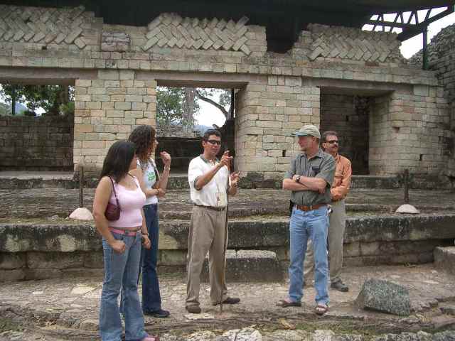 The Copan site is a fascinating testimonial to the sophistication and complexity of the Mayan civilization. A mild climate and abundant resources left their society ample leisure to develop impressive architecture, beautiful artwork and a complex social order. Because they developed a written language and left a detailed history behind, we know a great detail about their civilization. Our tours of the sites are fascinating and we learn a great deal about life in Central America before Conquest. Thousands of Honduran school children are bussed to the site each year to learn about their historical heritage. Two young Honduran ladies join our tour and it is fun to see their fascination at discovering their own history.
