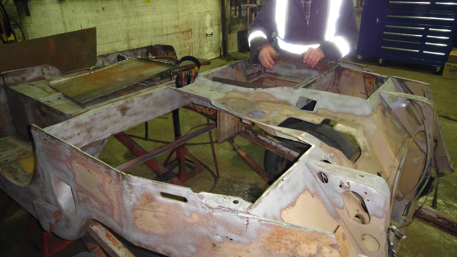 The first task is to remove the sheet metal and find out what how much body work is required. One of the nice aspects of rebuilding old jeeps is the availability of almost every part. Because they are such a popular project there are many sources of used parts and several businesses actually fabricate new replacements for original components that are no longer available. The floor pans and the under-floor braces are quite rusty, but we will be able to order anything that we can't fabricate in our shop.