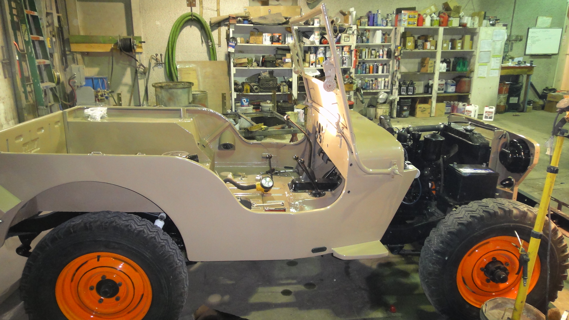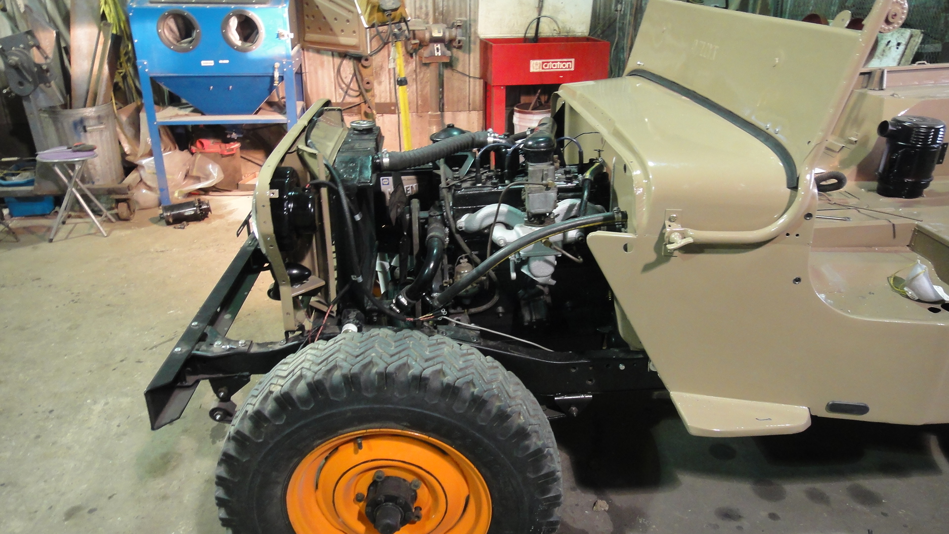 It is no end of fun to drive around town and it attracts tons of attention. Everywhere I go, people want to ask abut the jeep, where it came from, how old it is (older than I am!) and compliment us on the restoration. It actually rides better than we expected, even with its original ten-leaf springs. The old, bias-ply tires we left on it are a bit bumpy and the 1946 steering box is predictably a bit vague. When I drive it on the highway to Oxdrift, it hits a top speed of fifty-five miles per hour -- but you have to hang on pretty tight at that speed.