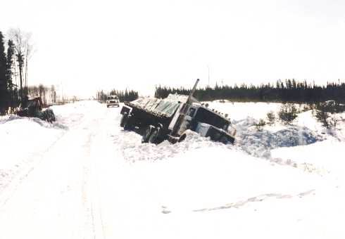 One of the more interesting enterprises that our company, Skene Transfer and Supply, does is winter road freight. Every winter, we haul semi-trailer loads of freight into 29 isolated First Nations communities in Northwestern Ontario. These are communities that are not accessible by permanent roads. All traffic in and out is by air, except for about three months during the winter. Each year, a system of temporary roads is created of ice and snow, over the lakes and rivers and through the bush, connecting the communities with the outside world. A year's supply of groceries, building materials, diesel fuel -- nearly everything you can think of -- is transported over the ice roads.