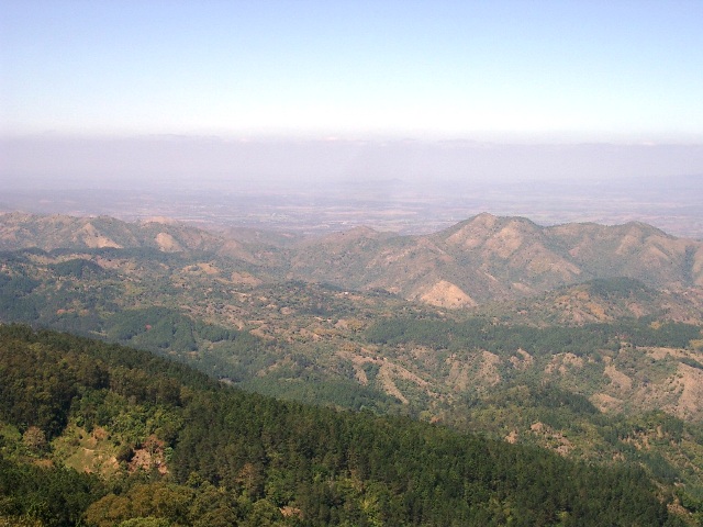 We head out of town to see some countryside and follow a steep, twisting road to a National Park at the top of a nearby mountain. The climate and the vegetation change dramatically as we climb. From the tropical heat and humidity near sea level, as we climb more than 1200 meters, the air becomes cool and the tropical vegetation gives way to pine trees and ferns. On the way up the mountain, we pick up a hitch-hiker, Alex, who turns out to be an agricultural specialist visiting coffee farmers in the mountains. He works for the government, of course, but evidently his job isn't important enough to rate a car. In order to visit his farmer-clients he has to hitch-hike, walk, bicycle or sometimes ride a horse. He tells us that once a tourist stopped him and said: "You can drive my car for a ways, if I can ride your horse." He thinks that was pretty funny! Alex speaks excellent English and tells us a lot about the economic situation of the farmers and how they grow coffee. We let him off partway up the mountain and promise to watch for him on the way back down.
