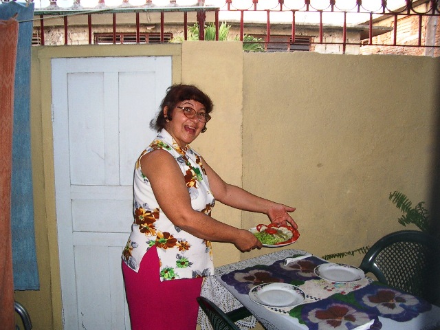 We spend some time getting lost before finding Calle Barnada. Our casa particular is supposed to be at #101 but the neighbourhood is very hilly, all the streets are one-way and we keep running out of numbers before we get to #101. On our third pass down Barnada, we notice a lady in a bright pink blouse waving furiously and shouting: "Aqui! Aqui! Seemingly, Rueben got the address wrong and it is really #14. Fortunately, Nancy is watching for us and can't help but notice two gringos in a foreign car passing in front of her house -- several times.