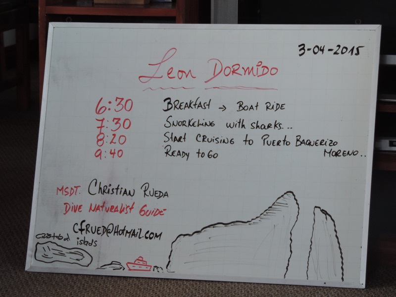Back on board, Christian does a presentation on the history of the Galapagos but most of us are too tired to pay much attention. The ship weighs anchor early as it is a ten-hour cruise to the next island. We all turn in early and sleep like logs, lulled by the rolling motion of the ship.