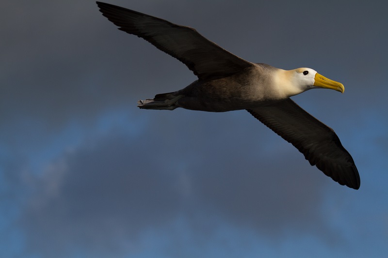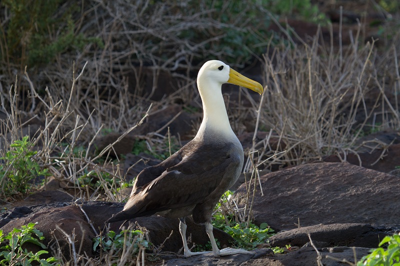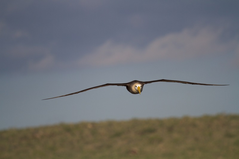 For me the highlight of this island is the Waved Albatross! These enormous birds spend months at sea without ever touching land. They soar for long distances with their 7 to 8 foot wingspans. Only during breeding season, they return to Espaņola island to lay eggs and raise their chicks. This island is ideal for them as it has high cliffs on the windward side that the albatross uses to get airborne. On land they are very clumsy and we are fortunate for the opportunity to watch one of their spectacular crash landings as it is just the very beginning of the breeding season.