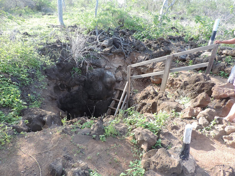 Christian leads us to a lava tube and we carefully descend into it. It is like a long tunnel created by hot gasses during the volcanic eruption. We clamber down rickety wooden steps, as if we are descending into the bowels of the earth. At the bottom we walk on a sandy floor and eventually reach the end which is blocked by seawater. It is very dark and we use our flashlights, but it is also delightfully cool after the blistering heat above ground.