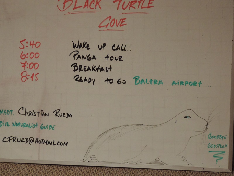 We return to the boat for breakfast, to pack and to say farewell to our shipmates. Meanwhile, the boat moves to Baltra Island and we are taken ashore for the short bus ride to the airport. Sadly, our Galapagos adventure is over! We both absolutely loved every minute that we spent here and we are determined to return one day to cruise the other itinerary. It takes you to the more remote western group of islands. There is much more still to see!