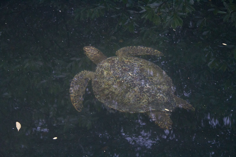 During our lunch break Christian gives us an interesting presentation on the various fish to be seen in these waters and then we are back into the pangas for our afternoon snorkelling session. This is the most spectacular place we have snorkelled in yet. it is called Pinnacle rock: a sheer rock rising straight out of the sea to a height of a couple hundred feet. We swim around the base amid sea turtles, a penguin swimming underwater, clouds of tropical fish and an octopus. The highlight for me is watching a sea turtle about three feet in diameter, swim straight towards me. At the last minute it dips down, passes sedately underneath me and goes on about his way.