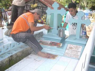 Decorating the Molina family gravesite |