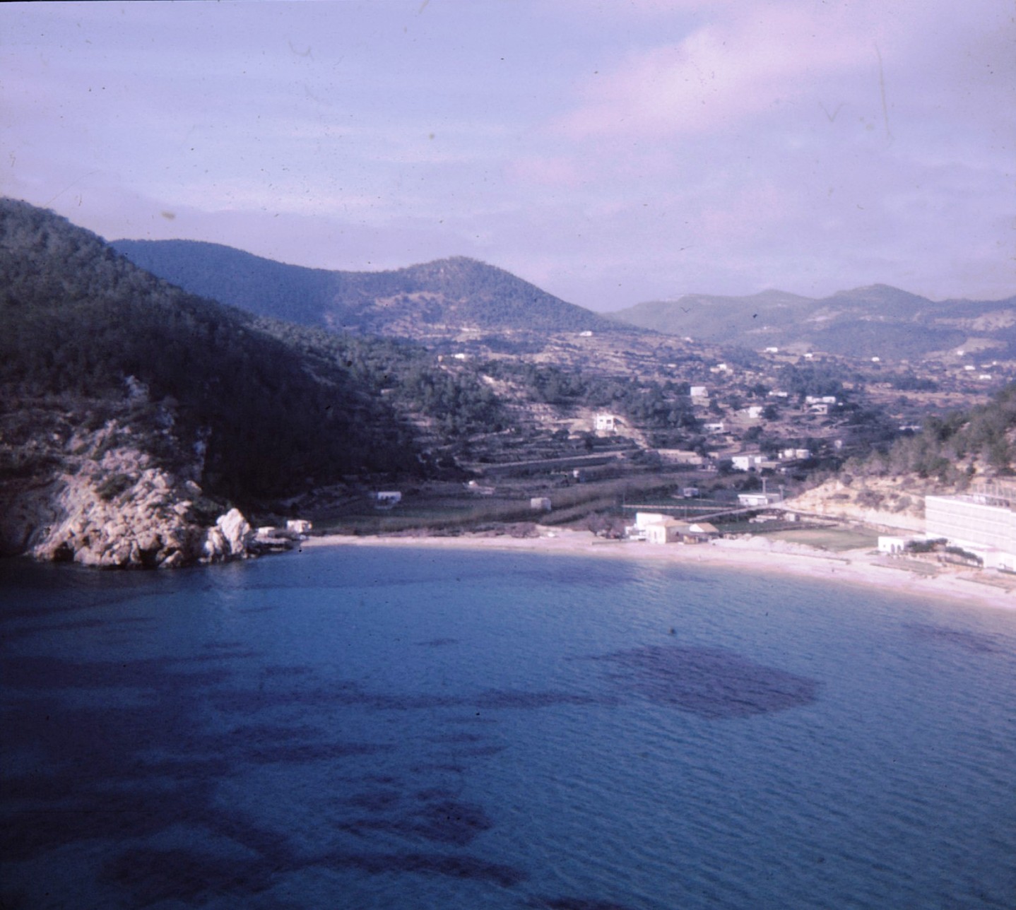 Today we rent a couple of motorcycles and set out to tour the island. The bikes are 125 cc Ossas, very modest in the power and speed categories, but on these narrow, twisty roads, we have a fine time. One road runs about 4 or 5 miles along the edge of a mountain side and we have a wonderful “road-race” along it. We visit the smaller towns of Sant’ Antoni and Santa Eulalia. The island is 50 Km long and about 20 wide and we pretty well travel it all. The country is largely farmland with a lot of terracing on the side hills. The sea is beautiful; the water is turquoise and very clear. I can hardly wait to swim and snorkel when we get to southern Spain, where it is supposed to be warmer.