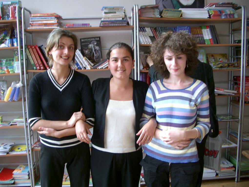 the way back, I stop in a bookstore to look for a map of Tbilisi. Three young girls in the shop chatter around me