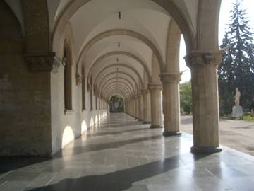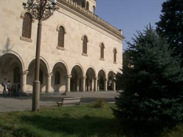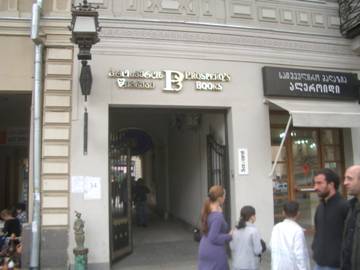 Today, I take a cab downtown to renew my acquaintance with Tbilisi’s old-town. First, I stroll down Rustaveli Avenue, easily my favourite city street of anywhere I have ever been. It is a lively place, crowded with happy people and shaded by huge old sycamore trees. The buildings are all about five stories high and seem to mostly date from the turn of the last century. Many of them display elaborate architecture and are in a very good state of repair. I walk past the Georgian Parliament, the Opera House, the State Theatre and the immense Hotel Tbilisi, destroyed in the 1992 civil war and now undergoing a massive restoration. I stop at Prospero’s Bookstore, a little gem of a place, a cozy English-speaking island in the Georgian sea. A short passage at #34 Rustaveli leads into a tiny, sun-filled courtyard. Prospero’s is a small shop but well-stocked with English books and also features a gourmet coffee shop. I finally find a Tbilisi street-map that I have been seeking for days and enjoy a cup of excellent coffee.