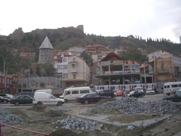 Tbilisi old town with Narakila Fortress above |