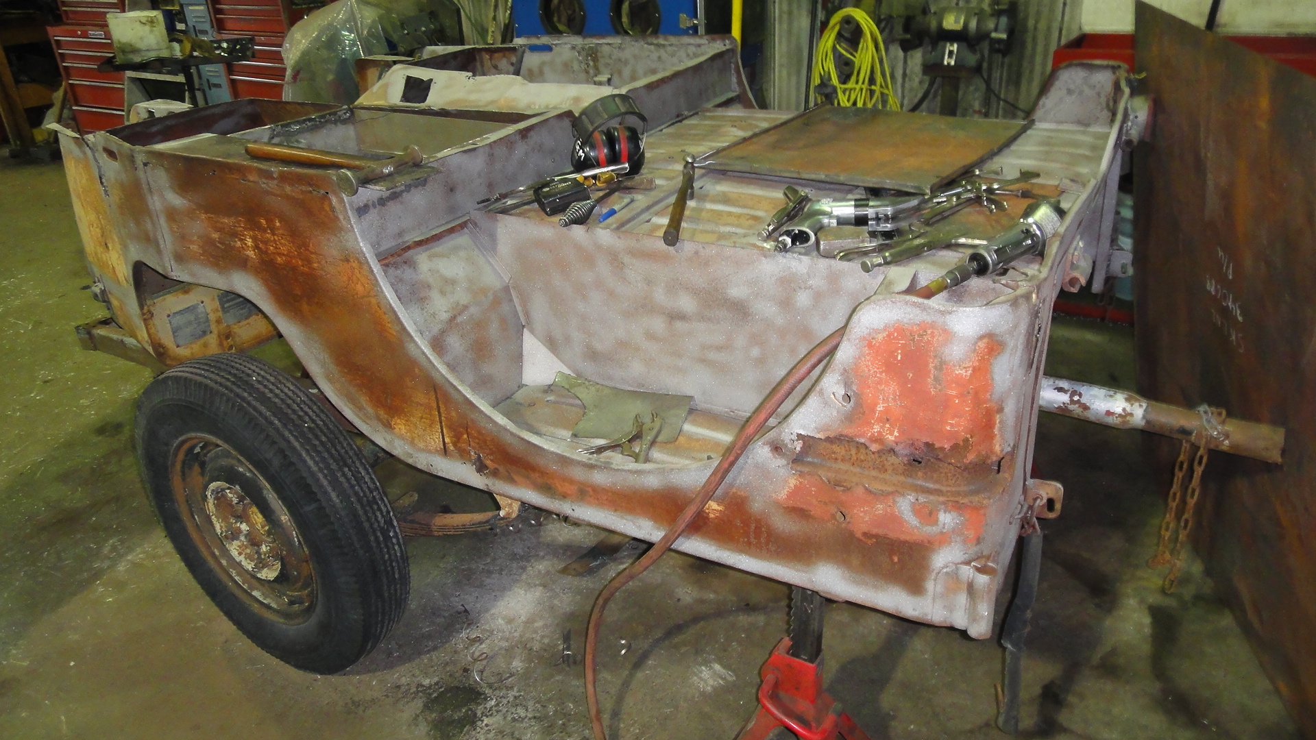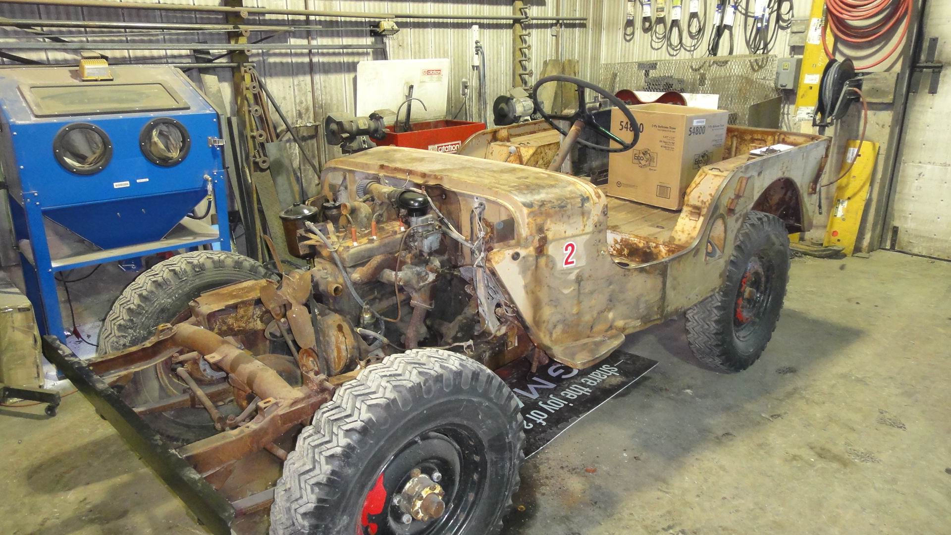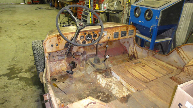 The first task is to remove the sheet metal and find out what how much body work is required. One of the nice aspects of rebuilding old jeeps is the availability of almost every part. Because they are such a popular project there are many sources of used parts and several businesses actually fabricate new replacements for original components that are no longer available. The floor pans and the under-floor braces are quite rusty, but we will be able to order anything that we can't fabricate in our shop.