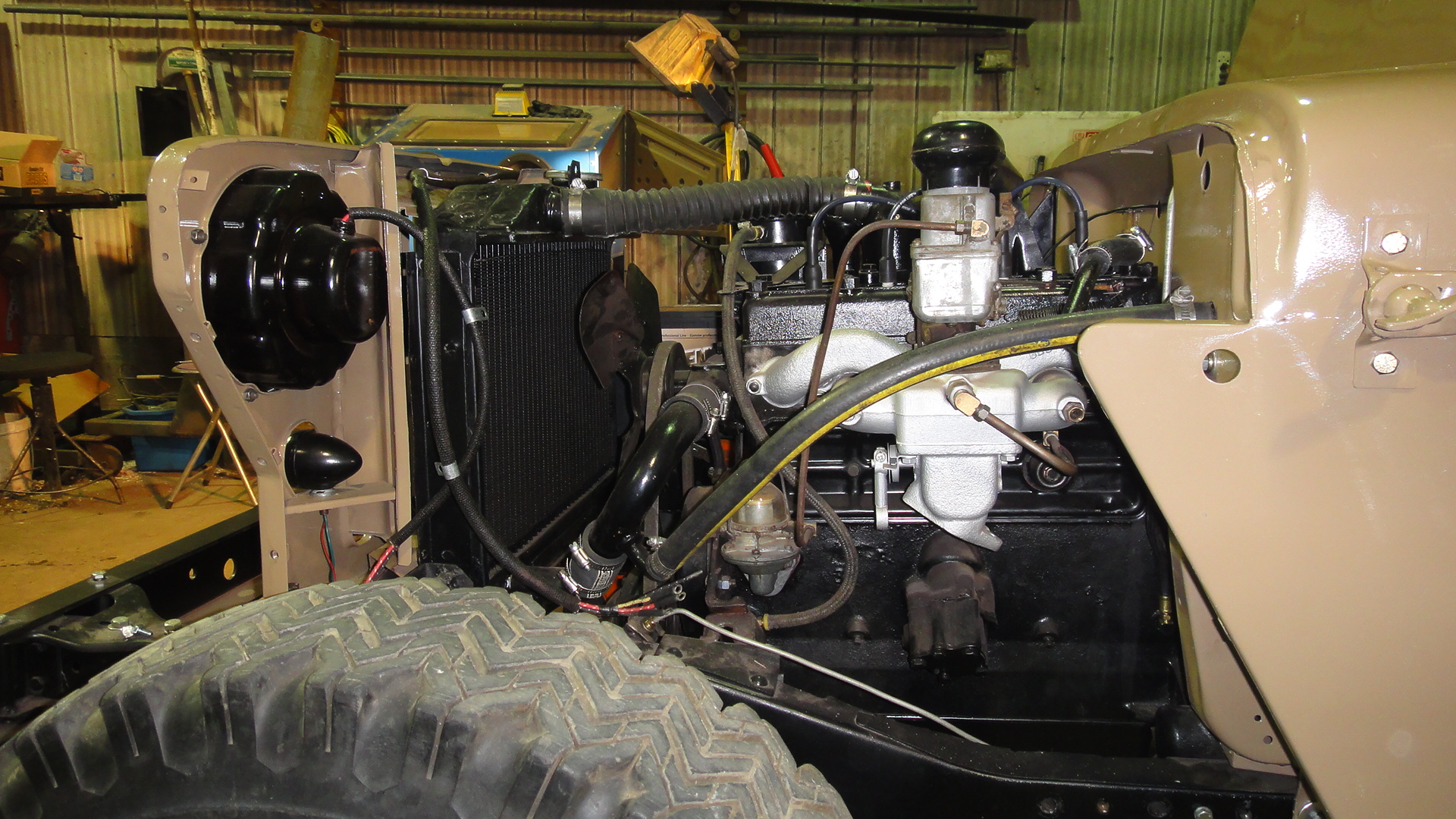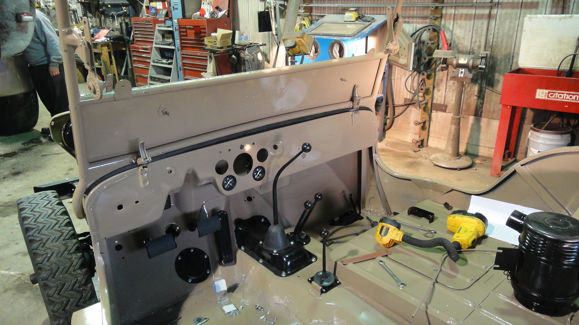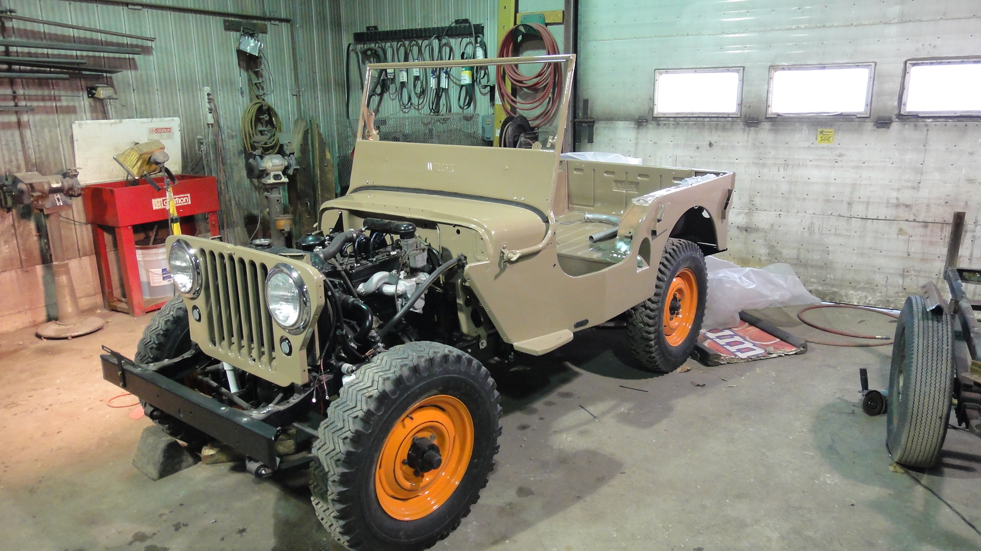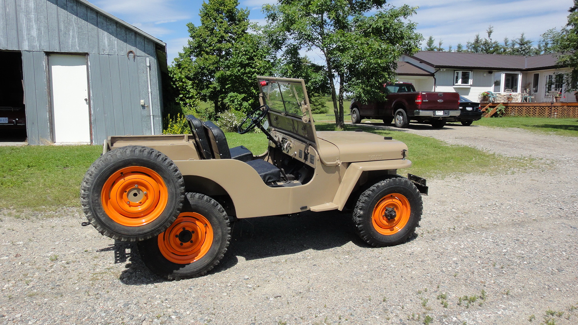 It is no end of fun to drive around town and it attracts tons of attention. Everywhere I go, people want to ask abut the jeep, where it came from, how old it is (older than I am!) and compliment us on the restoration. It actually rides better than we expected, even with its original ten-leaf springs. The old, bias-ply tires we left on it are a bit bumpy and the 1946 steering box is predictably a bit vague. When I drive it on the highway to Oxdrift, it hits a top speed of fifty-five miles per hour -- but you have to hang on pretty tight at that speed.