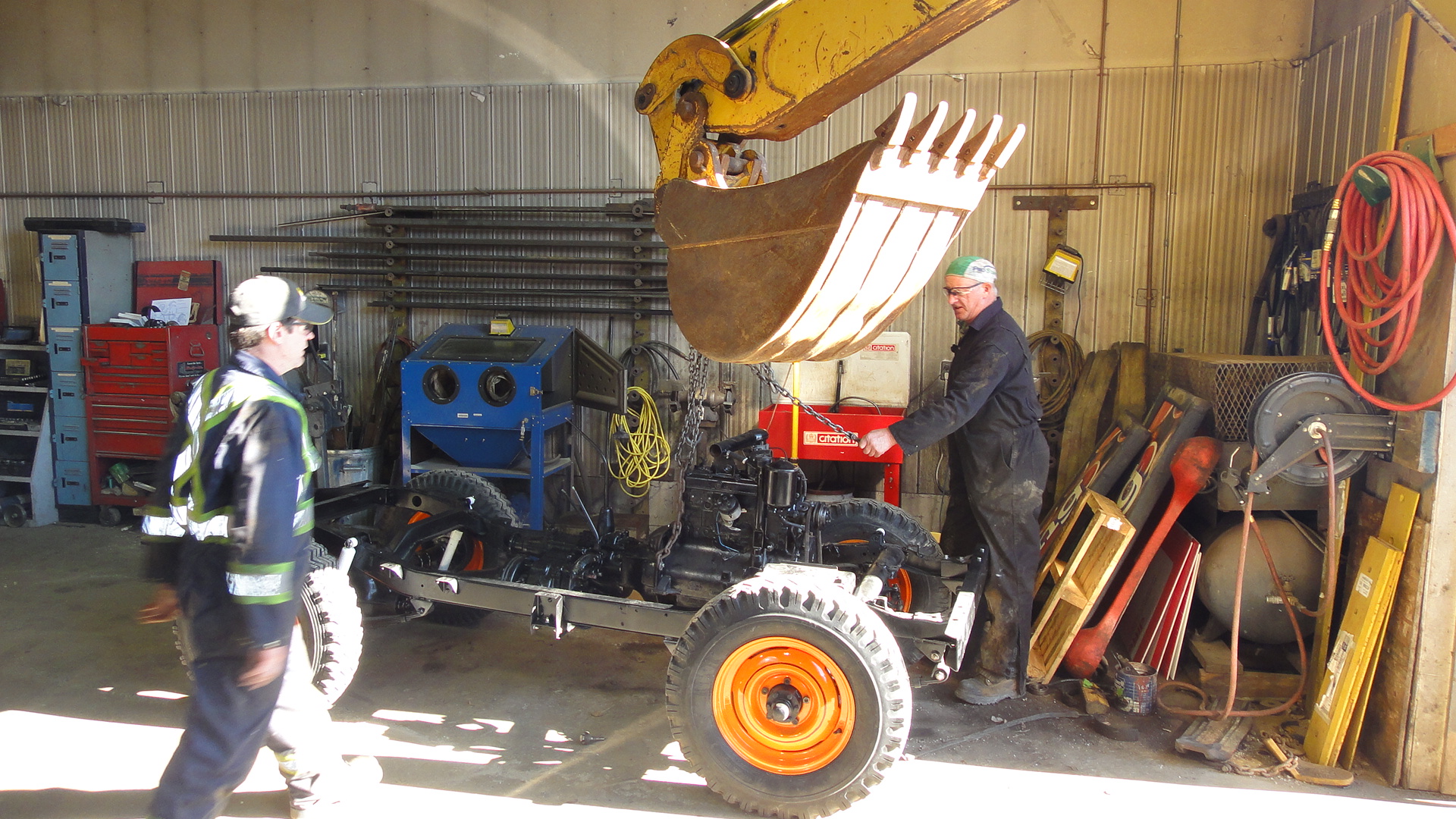 Gerry MacRae, our mechanic at B&M Delivery Service, has restored several old vehicles and he agrees that it will be an interesting project and should be a fairly straight-forward restoration. We drag it to the shop and start to clean it up. Our first impressions are confirmed. It looks much better with the after-market top removed and the dead vegetation cleared away. Gerry installs new sparkplugs, hooks up a battery and a temporary gas can ... and the engine starts! Within minutes the old four-cylinder flathead is purring and we drive it around the shop.