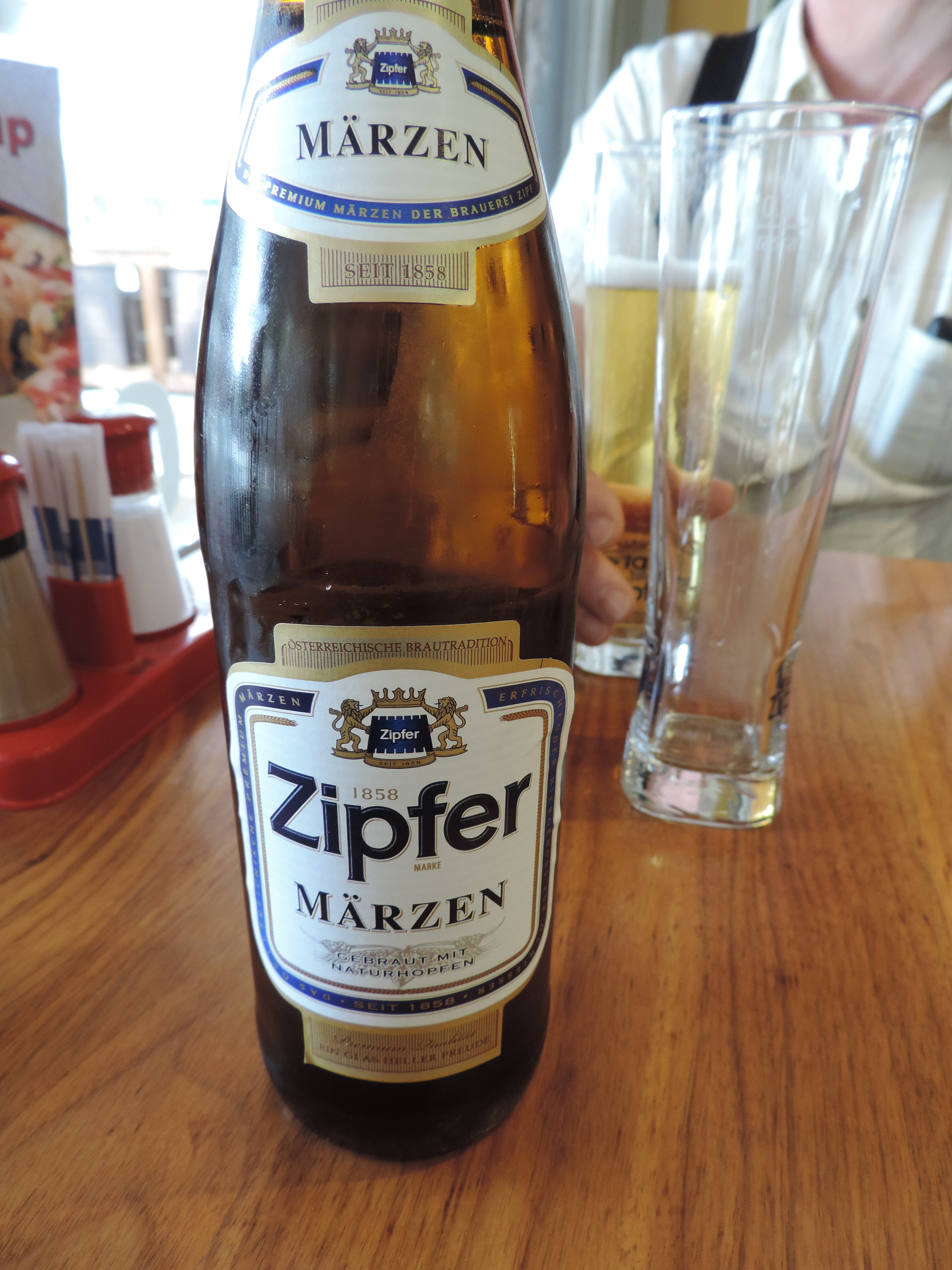 We are a little weary of heavy bread and salty wurst and schnitzel, so choose an outdoor restaurant that promises lasagne. The waiter compliments our choice of an Italian entree and recommends a lovely red Austrian wine: "Zwegielt". The entertainment on the large stage consists of a band in traditional Tyrolean dress, a men's choir and traditional dancers. The men stamp their feet, clap, slap various body parts and kick their legs in the air; all executed with shouts, yells and generally high good spirits. The choir even has a yodeller!