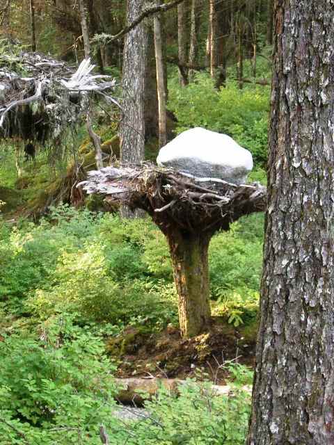 uprooted trees, turned upside down and planted with their roots in the air like giant