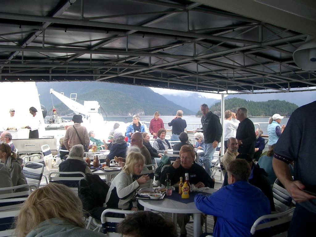 a barbecue together on the top deck under a bright sun, as we pass through