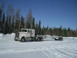The roads open for light traffic in early January, but it is usually mid-February before the ice on the lakes is thick enough (36") to carry a fully-loaded tractor-trailer. Most years, the roads begin to break up around the end of March, so we have a six-week window to get our freight delivered. This year, with a slightly longer season than usual, we are on track to deliver over ninety loads before the creeks start to flow and the snow bridges break down.